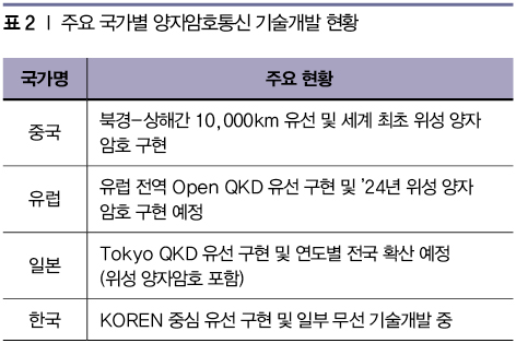 양자 암호통신 분야의 국내외 기술개발 및 산업화 현황
