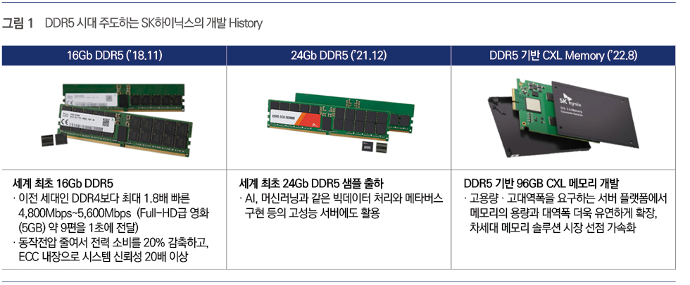 지난해 SK하이닉스는 현존 최고 속도의 PC/Client용 DDR5 제품을 개발했다. 업계 최초로 DDR5 6.4Mbps 속도의 32GB UDIMM 개발을 통한 High Speed, Low Power가 가능하게 된 것이다.