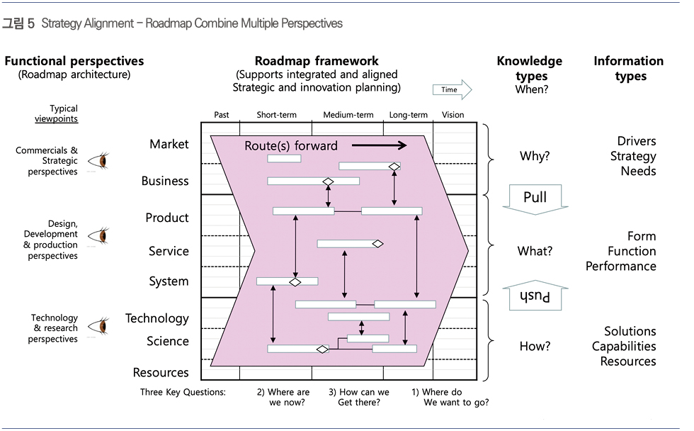SK하이닉스에는 상품기획이나 마케팅이 적절한 정보를 주어야만 혁신기술을 개발하기 위한 목표를 세울 수 있고 성과도 낼 수 있다며 가만히 있는 연구원은 없는 것으로 보인다. 사업개발에서도, 연구소가 혁신기술을 먼저 내어 놓아야 제품을 만들 수 있다고 뒷짐 지고 있지는 않는 것으로 보인다. 전사 전략을 포괄하는 Roadmap 운영체계에 해당하는 SK하이닉스 고유의 ‘내부 시스템’에 전사의 정보를 모으고 정리해서 실질적인 전략을 수립하고 있다.