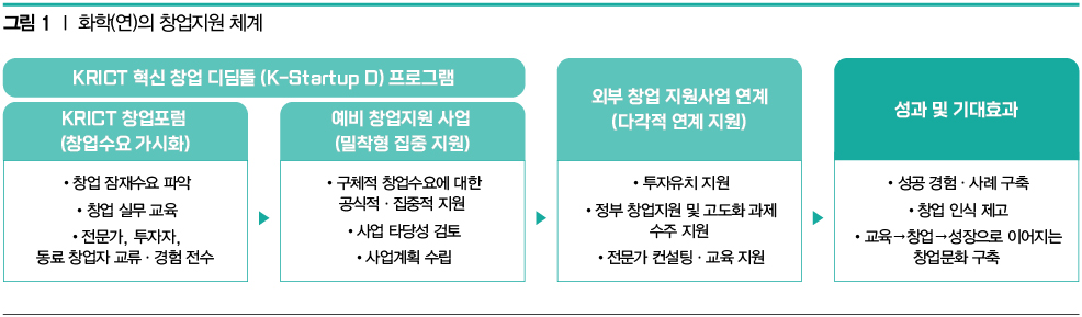 기술이전 이후의 기업지원을 확대를 위해서는 화학(연)의 연구자 창업지원 노하우를 활용할 계획이다. 창업교육, 투자유치, 외부기관 및 사업과 연계된 컨설팅 지원 등을 화학(연)에서 기술을 이전받은 외부의 창업기업에게도 확대하고 있다.