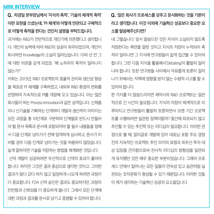 2008년에 면역글로불린 10% 제제 개발을 기획하고, 미국 시장 진출을 목표로 하여 2009년 개발에 착수한 이후 최종 허가와 미국 시장 진출까지 15년이란 긴 시간 동안 GC녹십자가 고민한 것은 “노하우의 축적이 일어나기 위해 어떻게 하면 기술을 체계적으로 저장할 수 있을까?’였다.