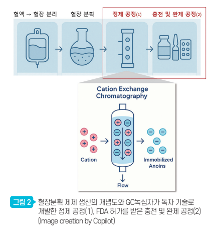 GC녹십자의 알리글로는 면역글로불린 제제에서 가장 큰 잠재적 리스크인 혈액응고인자의 잔존 가능성을 양이온 교환 색층 분석법이라는 정제 기술을 공정에 도입하여 ‘제로’에 수렴시켰다. 혈액응고인자는 미량으로도 혈액응고를 유도하여 혈전을 만들고 혈관을 막히게 할 수 있는 위험인자이다.