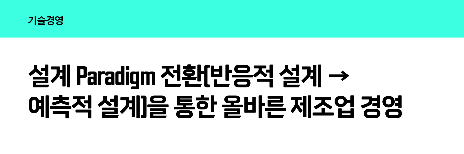우리나라가 제조업을 시작한지 반백년이 넘음에도 불구하고 아직도 30년 전의 설계의 개념과 방법론을 가지고 올바른 설계를 할 수 없어 올바른 제조업 경영을 하지 못하는 것은 불행한 일이다. 따라서 제조업의 경쟁력이 떨어지는 것은 당연한 일이다. 물론 Data 기반의 설계를 할 수 있는 툴을 도입하는 것 자체도 중요하지만, 더 중요하고 시간이 걸리는 것은 구성원들에게 설계에 대한 올바른 컨셉과 방법론을 인식시키고, 이를 구현할 수 있는 프로세스 즉, 시스템을 구축하는 것이다.