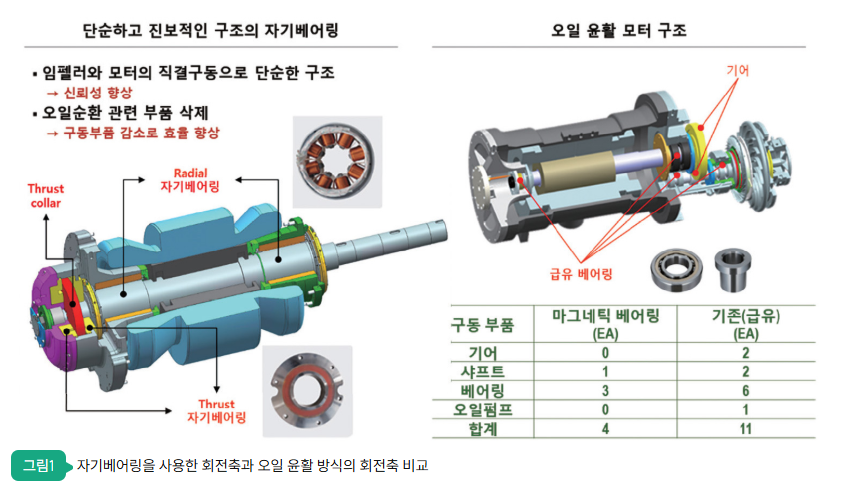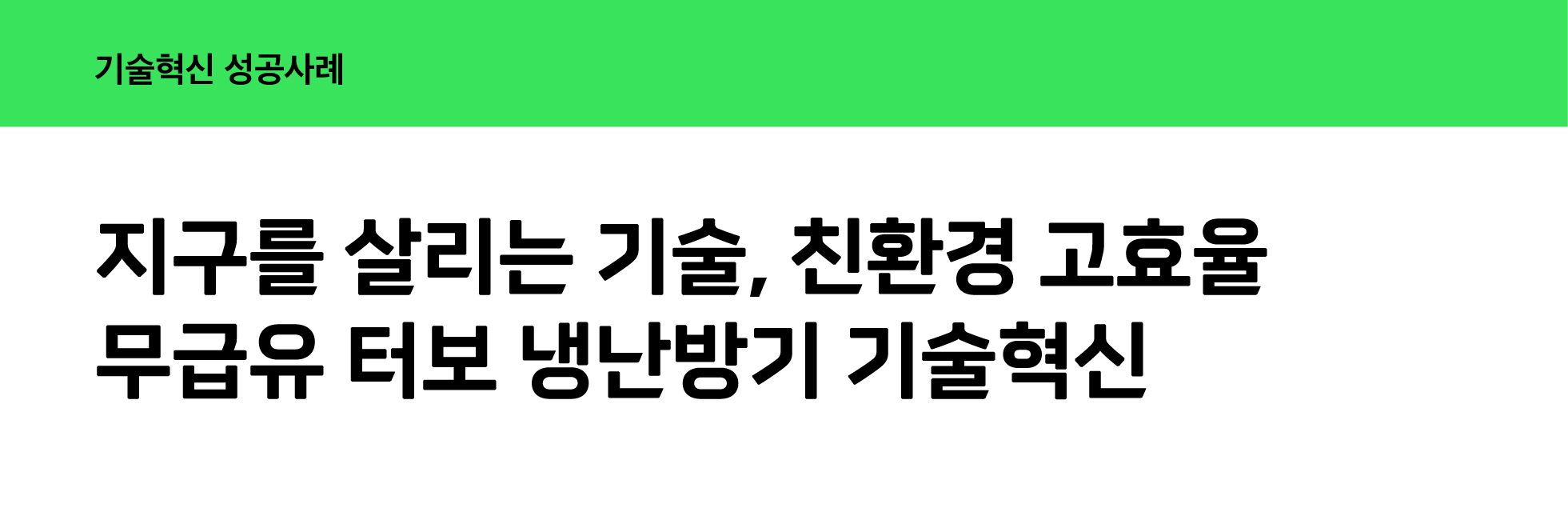 개발에 성공한 무급유 터보 냉난방기는 3가지의 기술혁신 포인트를 가진다. ▲친환경 냉매 R-1233zd를 사용 ▲자기베어링 자체 개발을 통한 무급유 원심식 터보 압축기 개발 ▲히트펌프(Heat Pump)를 적용하여 신재생에너지 활용이 가능한 난방기로의 기술 확장으로 요약할 수 있다.