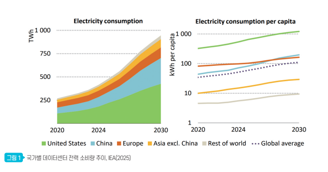 국제에너지기구(IEA)에 따르면, AI의 급성장으로 전 세계 데이터센터의 전력 소비는 2030년 945TWh에 달해 일본의 연간 전력 소비량을 넘어설 것으로 전망된다. 특히 AI 전용 데이터센터의 전력 수요는 현 수준 대비 4배 이상 증가할 것으로 예상된다. 이러한 전력 수요 증가는 신재생에너지와 다음과 같은 세 가지 충돌 지점을 만들어낸다. 첫째, AI 데이터센터는 24시간 365일 안정적인 전력을 필요로 하지만, 태양광·풍력은 날씨에 따라 발전량이 변동하는 간헐성 문제가 있다. 둘째, 데이터센터의 막대한 전력 부하와 신재생에너지의 불규칙한 발전량은 전력망의 불안정성을 유발한다. 셋째, 신재생에너지 발전소와 데이터센터의 입지가 다른 지리적 불일치로 인해 막대한 송전 인프라 투자가 필요하다.