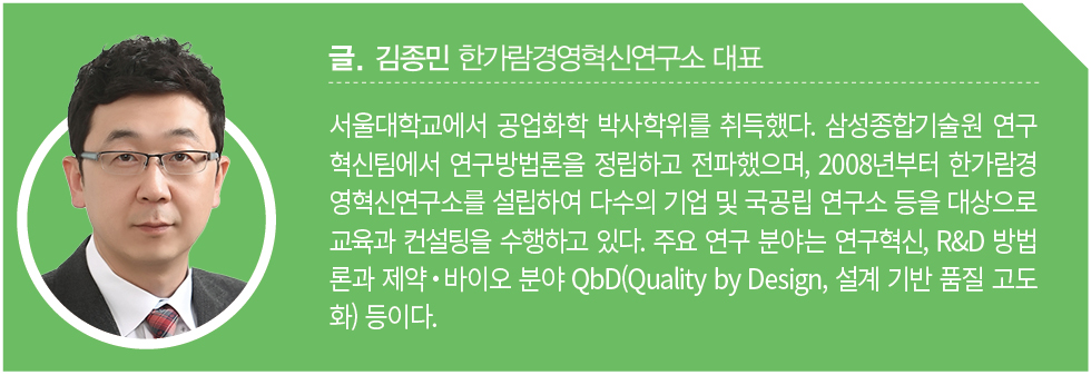 이미 많은 기업의 연구소들은 소위 말하는 ‘연구방법론’이라는 도구를 활용해 ‘스마트’하게 연구개발을 수행하고 있다. 이러한 도구들은 연구개발의 방향성을 더 명확하게 해 주고, 연구개발을 합리적이고 효율적으로 수행하도록 도와준다. 이로써 조금 더 빨리, 적은 비용으로 R&D에 성공하도록 도와주는 것이다.