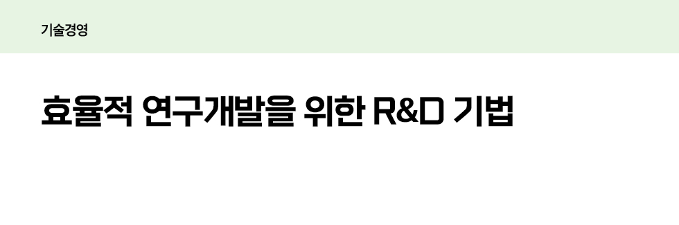 모든 기업은 생존과 성장을 위해 연구개발에 아낌없이 투자하고 있다. 이러한 투자가 바라는 성과로 이어지기 위해서는, 올바른 R&D 전략의 수립과 효율적이고 효과적인 R&D 실행이 필수적일 것이다. 워라밸을 중시하는 시대로 진화하면서 ‘불이 꺼지지 않는 연구소’와 같은 R&D 문화는 더 이상 찾아보기 어려워졌다. 여기에 훨씬 더 치열해진 경쟁에서 살아남기 위해서는, R&D의 효율성 확보가 무엇보다 중요한 당면과제가 되었다.