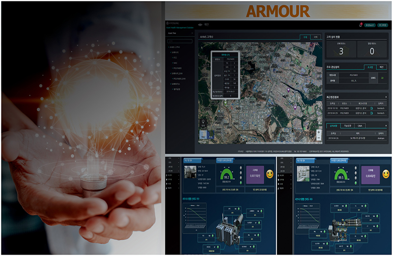 과거에는 전력의 효율적 생산과 안정적 공급이 중요한 과제였다면, 이제는 안정적 공급을 위해 문제를 어떻게 사전 예방하고 잘 관리할 것인지가 매우 중요한 시대이다. 전력설비의 유지관리를 위해서는 기술자가 주기적인 점검을 하면서 문제가 발생하기 전에 일정 주기를 기준으로 부품을 교체하는 방식이 지난 수십 년간 보편화된 아날로그적 방식이다. 그러나 ‘동일 부품은 모두 수명이 동일한가?’라는 상식적 질문에 대해 전력설비를 운용하는 사용량과 작동 빈도수에 따라 전력설비에 대한 합리적인 유지관리가 필요하다는 잠재적 니즈로부터 출발한 것이 효성중공업의 변전소 자산관리 솔루션 아모르(ARMOUR)이다.