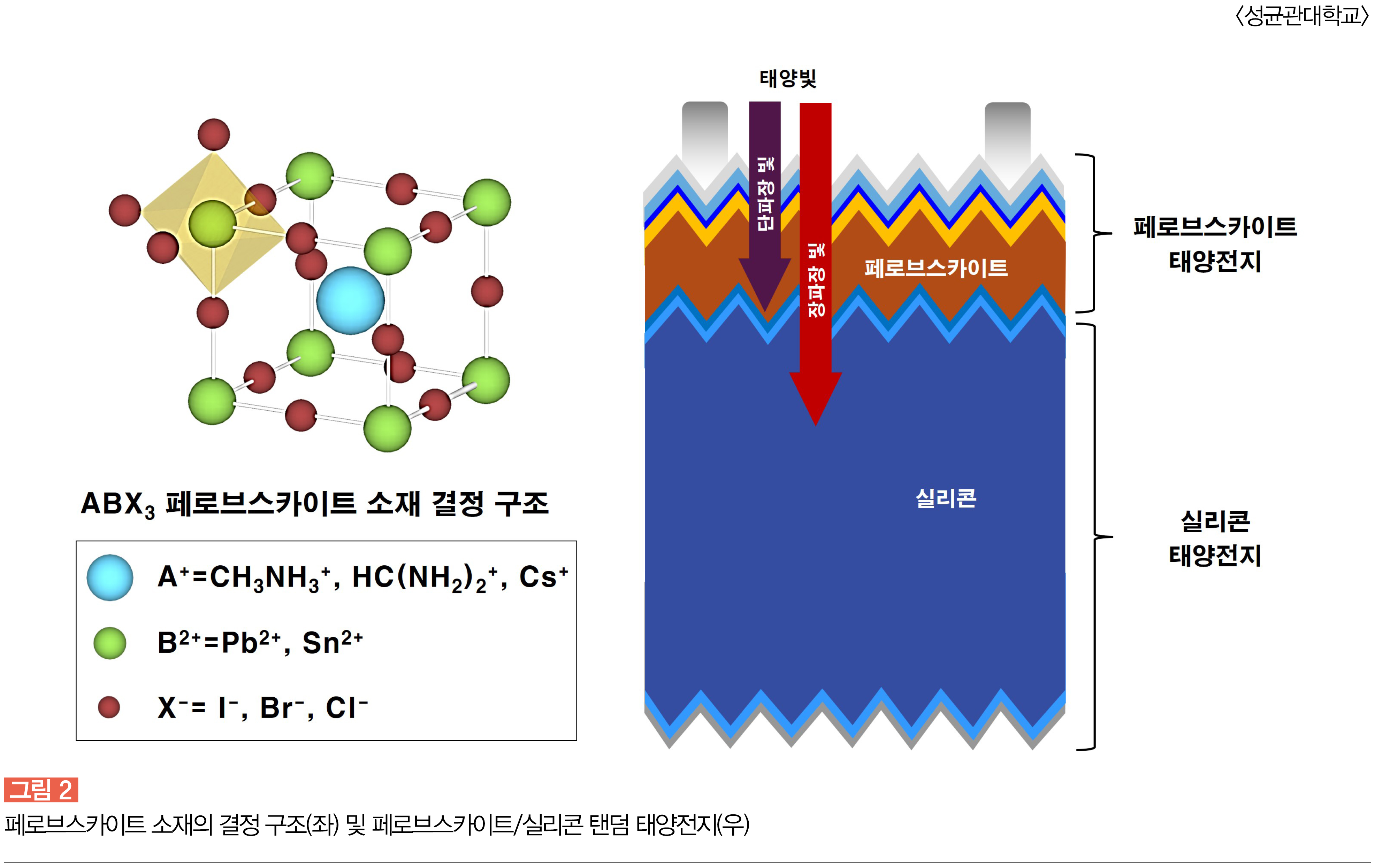 2012년 국내 연구진에 의해 고체형 페로브스카이트 태양전지 소자가 최초로 개발된 이래, 페로브스카이트 태양전지의 에너지변환(빛에너지→전기 에너지) 효율은 빠르게 개선되었다. 최근에는 상용화된 실리콘 태양전지(27.1%)와 유사한 수준인 26.7%에 도달하였다. 특히, 페로브스카이트/실리콘 탠덤 태양전지는 최근 에너지변환 효율이 33.9%로 보고되었다. 탠덤 태양전지는 페로브스카이트 태양전지를 기존 상용화된 실리콘 태양전지 위에 적층하여 두 태양전지를 모두 활용하는 태양전지다. 페로브스카이트/실리콘 탠덤 태양전지는 상용화된 실리콘 산업 기술을 활용하면서 태양전지의 경제성을 획기적으로 향상할 수 있는 차세대 기술로 각광받고 있다.