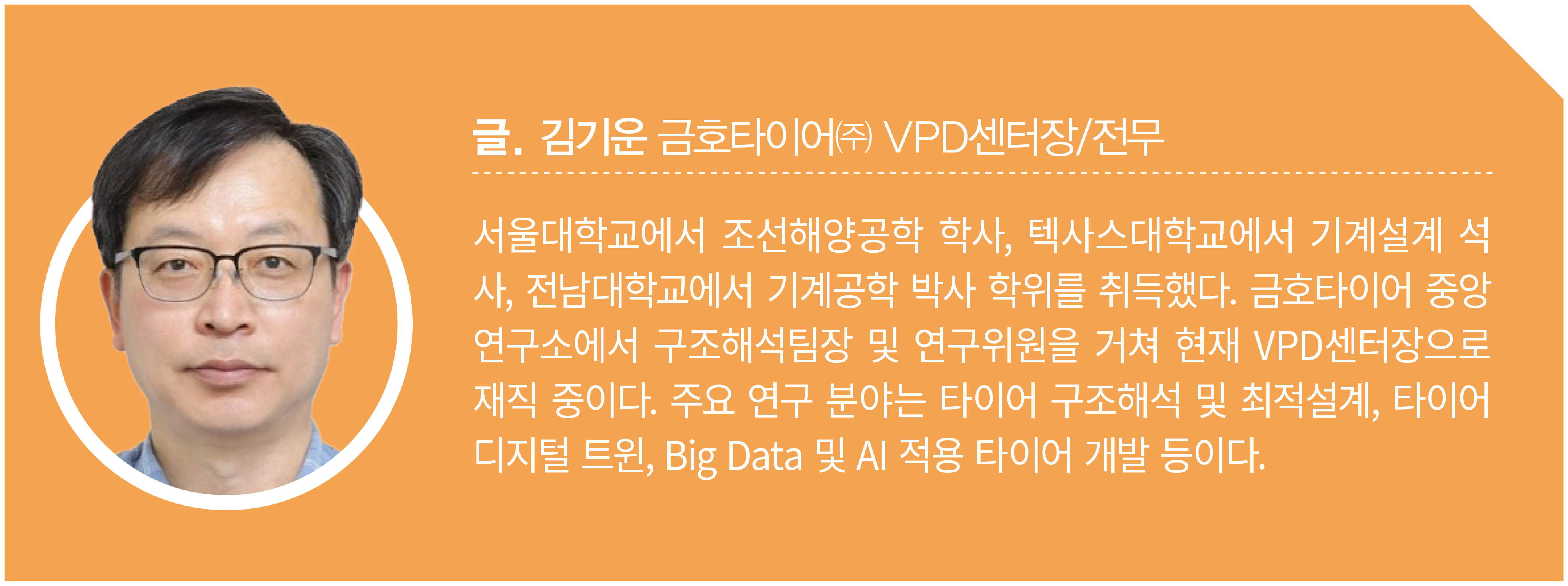 이에 자동차의 부품 산업인 타이어 업계에도 요구 수준이 동일하게 높아지고 있다. 따라서 타이어 제조업체들은 가상 제품개발 프로세스를 도입하여 OEM(Original Equipment Manufacturing; 위탁생산) 요구 성능을 빠르게 확보하고, 전체 개발 기간을 단축하려는 변화를 보이고 있다. 또한 타이어 설계와 FEM(Finite Element Method; 유한요소법) 해석뿐만 아니라, AI 기술을 적용한 FEM 해석의 단점을 극복하려는 움직임도 있다. AI 기술은 복잡한 해석 과정을 단순화하고 더욱 정확한 예측을 가능하게 하여, 타이어의 성능을 최적화하는 데 중요한 역할을 한다. 이러한 기술적 혁신은 타이어 산업의 미래를 밝히고 있으며 지속 가능한 발전을 위한 중요한 발판이 되고 있다.