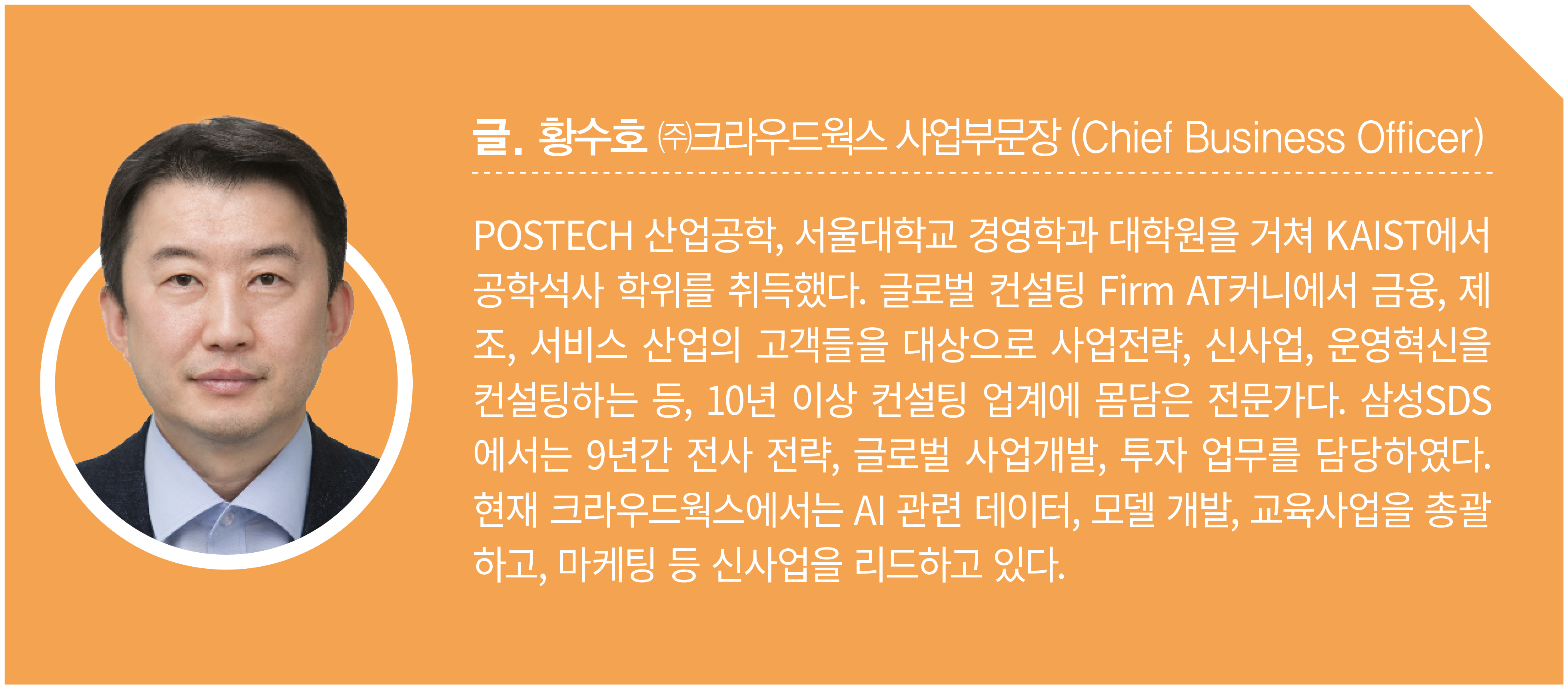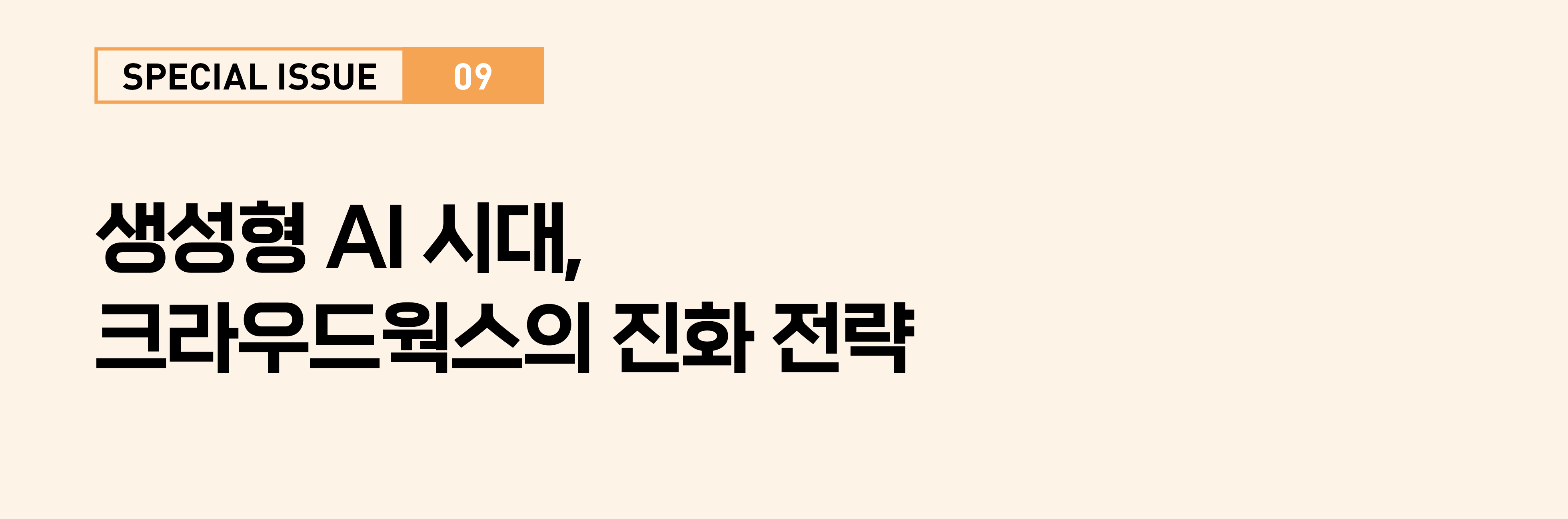크라우드웍스는 AI로 해결해야 할 조직 내부 문제의 정의(AI 과제 도출 및 정의), 실습형 AI 교육 및 변화관리, 모델 개발, 모델 운영이라는 AI Lifecycle에 대하여 플랫폼, 솔루션, 서비스를 총체적으로 제공하고 있다. 크라우드웍스는 데이터 사업을 통해 급성장하여 2023년에 상장하였으며, 한국과 일본 법인에 기반하여 AI 사업을 전방위적으로 확대하고 있다.