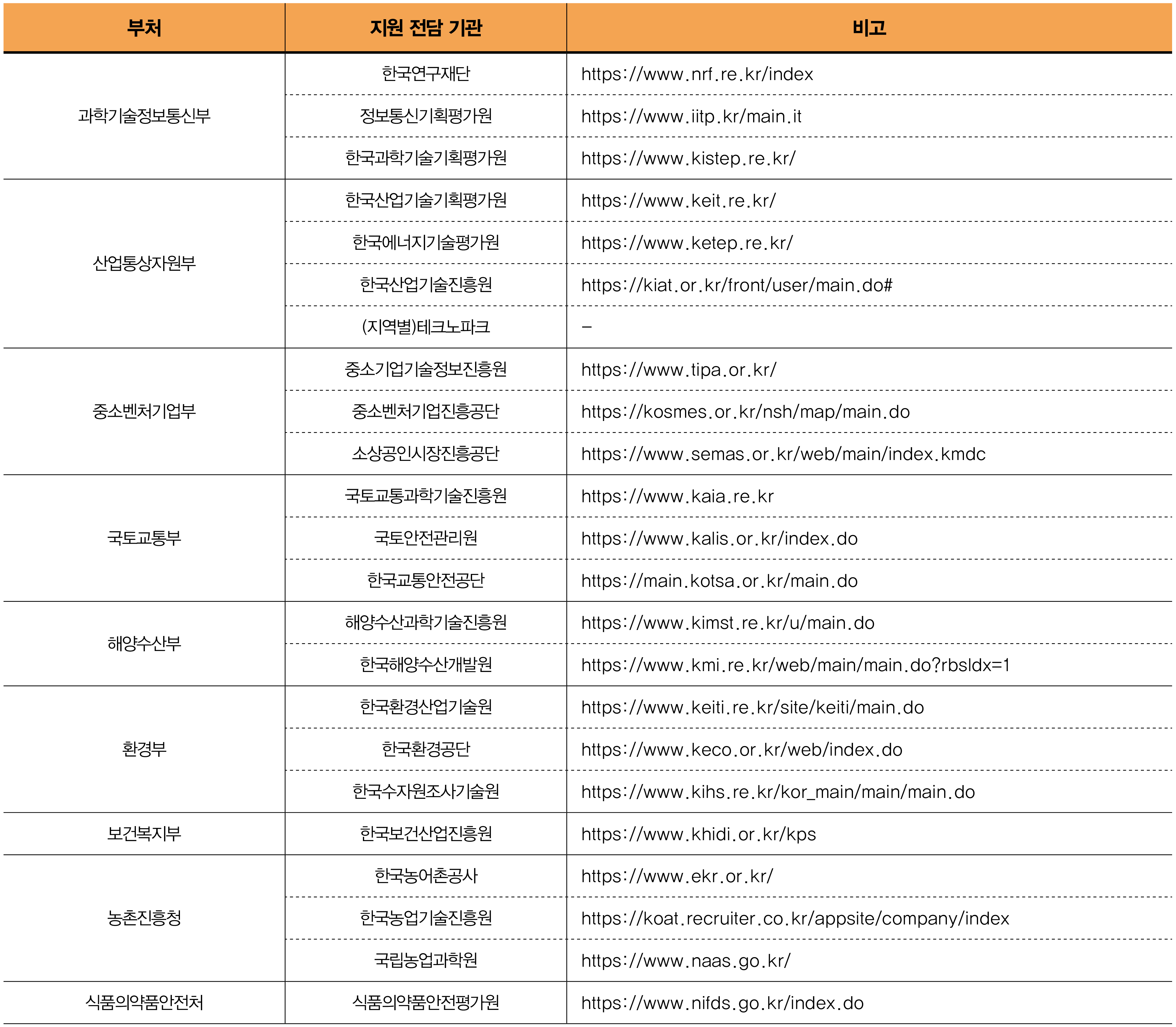 [표 1] 정부 부처 주요 R&D 지원 사업 전담 기관