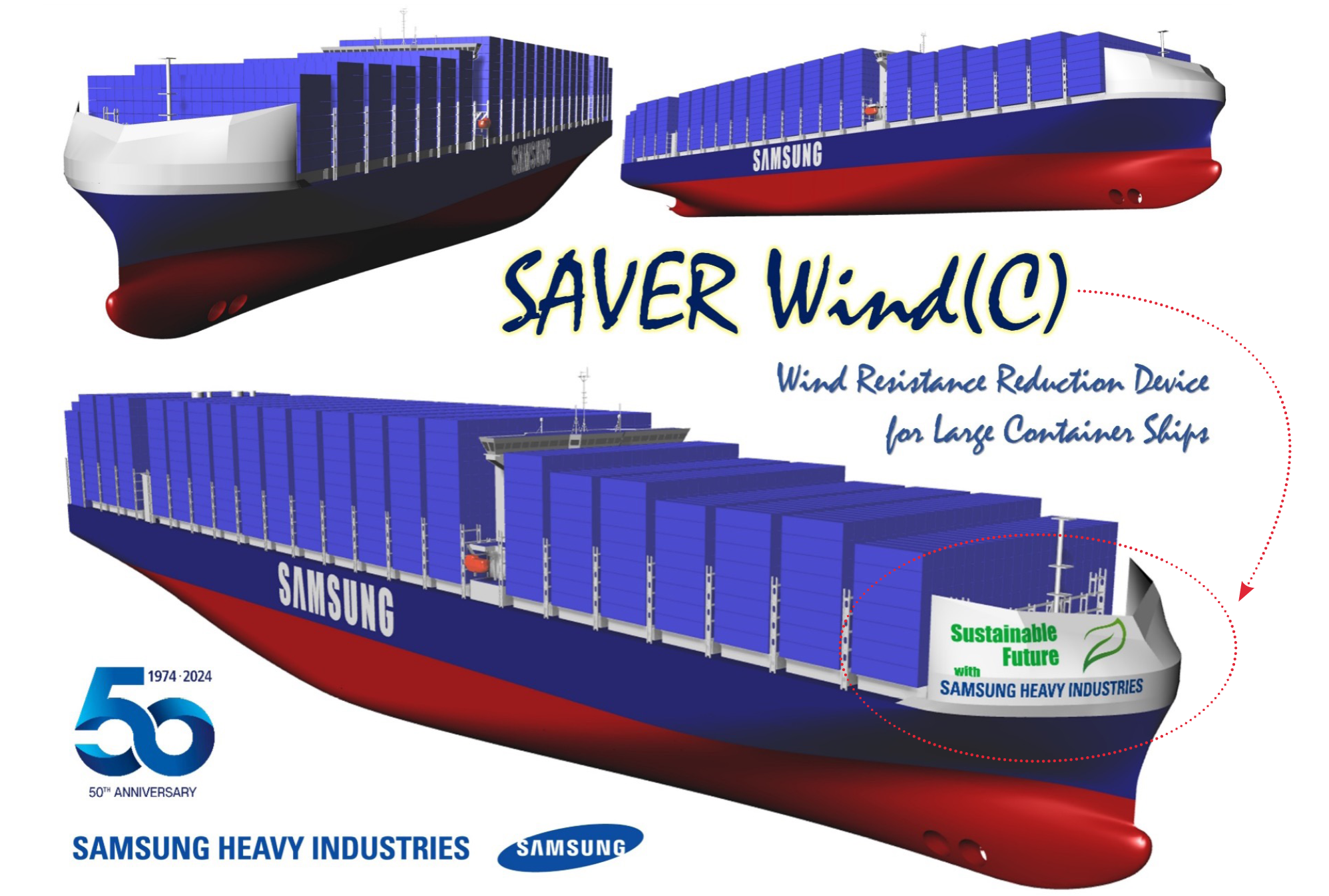 삼성중공업의 SAVER Wind(C)는 이렇게 컨테이너 벽이 받는 공기저항을 줄여 연비를 높여 준다. 또한 악천후 시 발생하는 거센 파도의 들이침으로 인한 충격과 하중으로부터, 컨테이너와 뱃머리 부분의 각종 의장품을 보호해 준다.