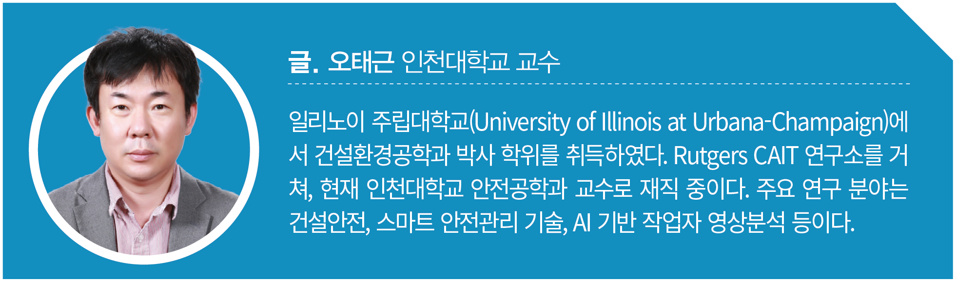 AI 기반 분석기술을 현재 개발 중인 스마트 안전관리와 연계하면, 다양한 유해위험요인 감지를 통해 효과적인 안전관리가 가능하다. 또한 근로자의 웨어러블 센서와 CCTV 등 영상 장비를 통해서는 근로자의 작업 과정을 기록·추적할 수 있다. 따라서 근로자의 안전 작업 수칙 위반이나 불안전한 행동, 작업오류 등을 자동 점검하여 안전한 근로환경을 조성할 수 있다.