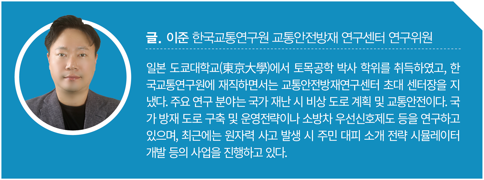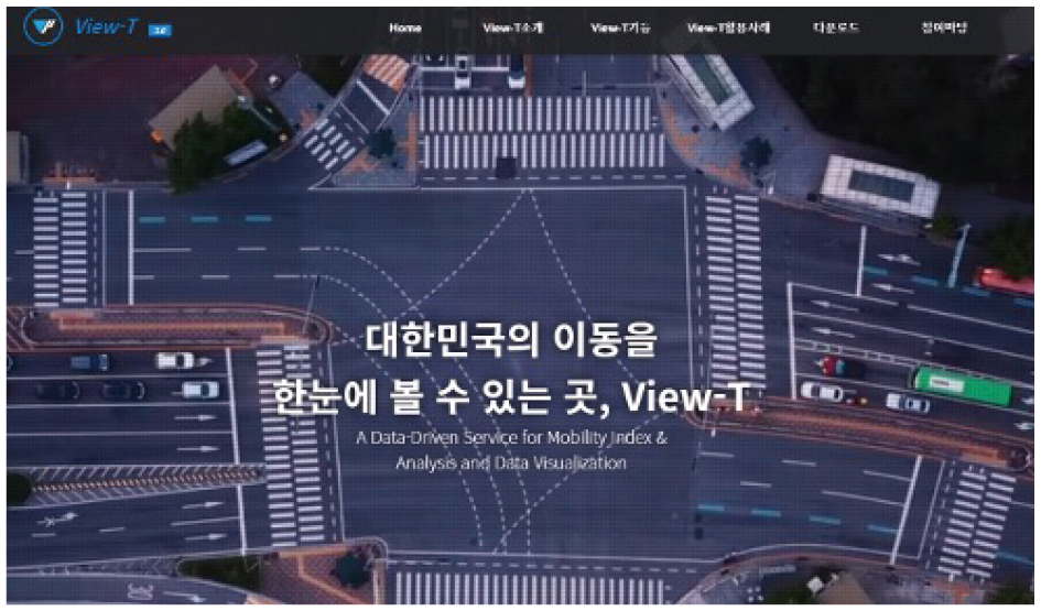 교통연구 분야에서는 지난 50년간 사람의 이동 행태와 특성을 연구하여, 국민 평균 1일 동안의 총이동을 예측하는 교통수요 분석 방법론을 개발해 왔다. 이러한 분석의 초석은 질 좋고 정확한 자료로 국가의 표준이 되는 국가교통DB였다. 이제는 국가교통DB에 첨단기술을 접목하고 기존에 없던 자료들을 활용하여, 이용성과 분석 기능을 향상한 View-T 서비스를 제공하고 있다. View-T 서비스는 국가의 의사결정에 공정하고 체계적인 표준데이터로 활용되었으며, 활용성과 서비스를 확대하면서 재난 분야로도 그 적용이 확대되고 있다.