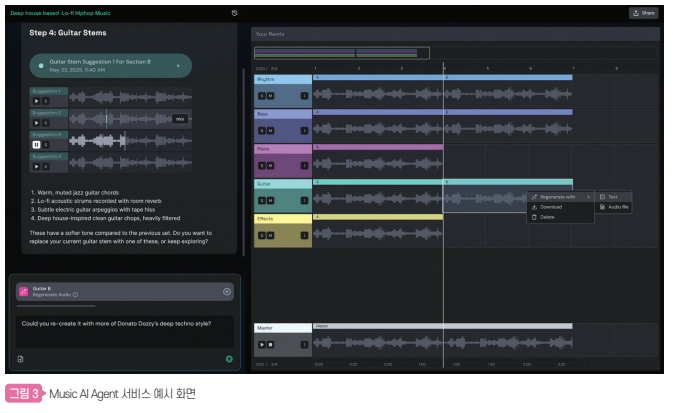 이 변화의 중심에는 Music AI Agent가 있다. AI는 단순한 제작 도구를 넘어, 창작·유통·정산이 통합된 플랫폼으로 진화하고 있다. 사용자의 감정과 상황에 따라 음악을 실시간으로 구성하며, 사용자가 만든 리믹스나 변형은 원저작자에게 자동 정산된다. 음악은 고정된 결과물이 아닌 함께 진화하는 구조적 콘텐츠로 변모한다.
